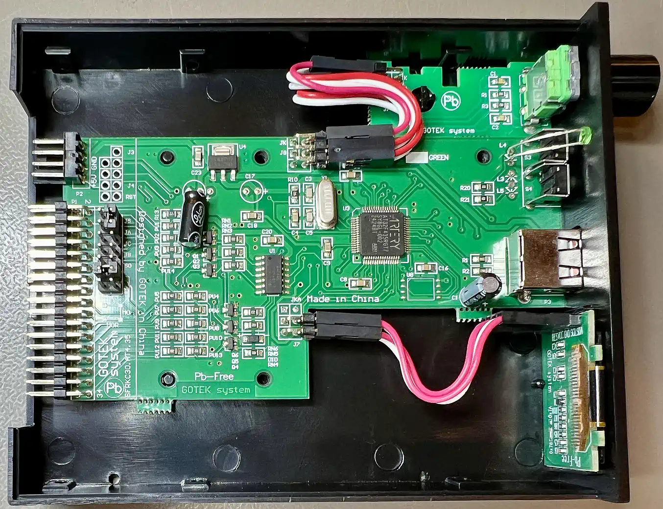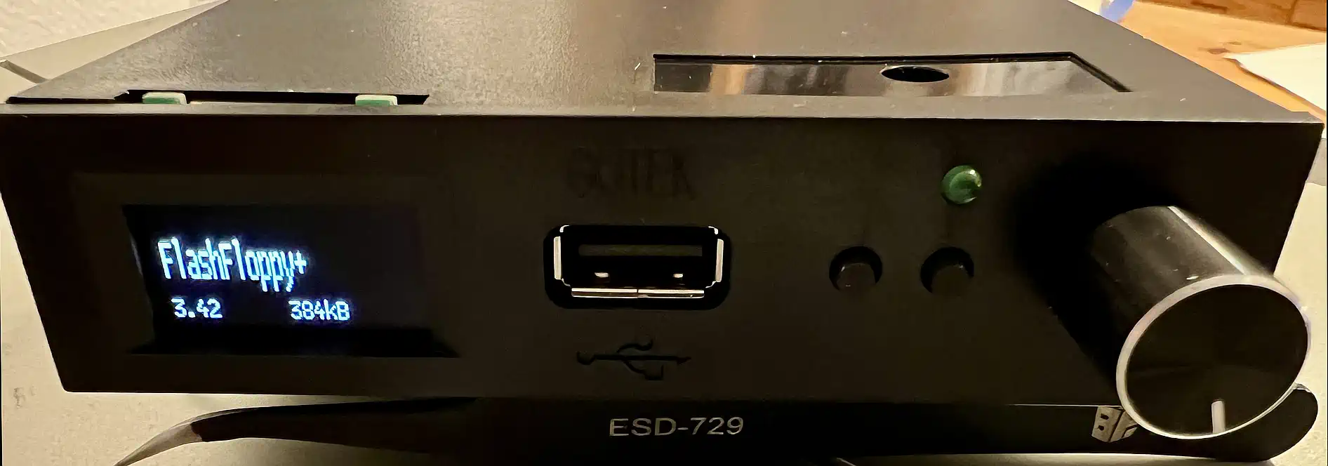 Da ist etwa die Bedienung: der HxC hat 3 Tasten, ein 16x2 Matrixdisplay und einen SD-Karten-Slot. Damit ist die Anwendung klar umrissen: Auswahl aus wenigen vorbereiteten Disketten, die dann lange benutzt werden, dazu ein stabiles Gehäuse mit weitgehend flacher Front, und einen infernalisch lauten Piezo-Lautsprecher, um auch die Stufenpresse nebenan zu übertönen. Er ist dazu der Maßstab wenn es um Floppy-Simulation geht. (... bzw. er WAR es, was die Flexibilität angeht. Hierzu gibt es unten irgendwann ein separates Kapitel zum Thema "Konfiguration".) Leider kein Open Source was den PIC angeht, der die Arbeit macht - lediglich das Konversionsprogramm ist im Sourcecode verfügbar. Der Gotek hat - in meiner Ausführung - einen Drück-Drehsteller zusätzlich zu den 2 Tasten, einen USB-Port anstelle eines SD-Kartenslots, und - das ist wichtig - ein relativ hoch auflösendes und gut ablesbares OLED-Display. Hard- und Software sind Open-Source, und ich habe eine sehr ausführliche Webseite rund um diesen Emulator gefunden (da gibt es mehr, das liegt am Open-Source/Hardware-Konzept). Naturgemäß gibt es auch weniger empfehlenswerte Nachbauten, vor allen bei den 40 Räubern. Man sollte immer darauf achten, einen aktuellen Emulator zu kaufen, auf dem explizit "Gotek" sowohl auf dem Gehäuse als auch auf der Platine steht, und der mit dem Artery AT32F435 Chip ausgestattet ist. Da ist es dann schon nicht mehr ganz so billig, aber mit den anderen Klonen hat man nur Ärger. | |||