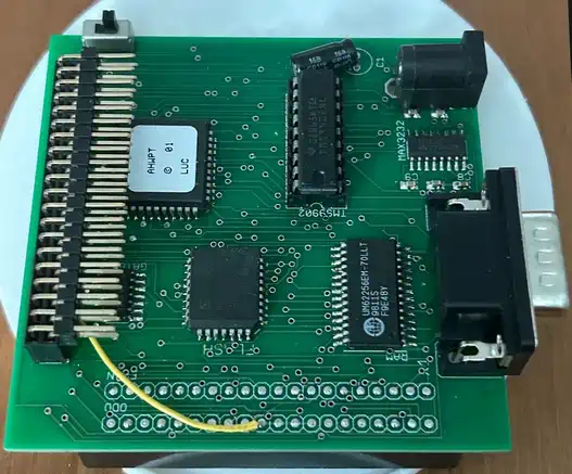 Die Hardware ist schnell erklärt: am Expansion-Port der Konsole hängen das DSR-ROM (als Flash), das Xilinx CPLD, die 32K RAM sowie der TMS9902 (mit dem unvermeidlichen MAX232) und etwas 'Glue' -