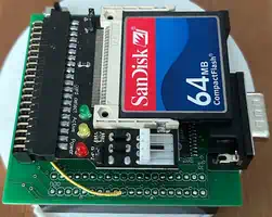 Die gesamte Adress- und CRU-Decodierung wird - wer hätte das gedacht - vom CPLD erledigt. Bei der Software wird es spannender, denn der Inhalt der Karte ist z.B. auf einem PC nicht ohne weiteres lesbar. Das CF-Betriebssystem unterteilt die ganze Karte in 800KB große logische Volumes, und adressiert die einzelnen Sektoren der Karte direkt - dabei verwendet es einen Offset, der sich aus der laufenden Volume-Nummer ergibt, und der anhand der virtuellen Geometrie auf die Spuren, Seiten und Köpfe umgerechnet wird. Näheres zeigt ein Blick in den Quellcode, den der Autor Jaime Maililong als 'Abschiedsgeschenk' gestiftet hat... Die Sektoren einer CF-Karte sind 512 Bytes groß, die CF-DSR verwendet davon nur die erste Hälfte, angeblich weil der Decodieraufwand der CF-Hardwareansteuerung begrenzt werden sollte... naja - am Ende wird halt nur die Hälfte des verfügbaren Platzes genutzt - siehe oben, there's plenty! Die tatsächlichen 'Disketten' sind immer 400KB groß, haben also 1600 Sektoren (es sei denn man erzeugt Volumes mit externen Tools - die DSR passt sich der Größe an), womit das TI-Filesystem voll ausgenutzt wird ohne inkompatibel zu werden. Jedes der Volumes kann auf eines der 3 Diskettenlaufwerke DSK1, DSK2, DSK3 ge'mountet' werden, wobei der 'Mount Point' von DSK1 separat auf der CF-Karte gespeichert und beim Neustart wiederhergestellt wird. Auf der Anwenderseite stehen die 3 Befehle CALL MOUNT(), CALL UNMOUNT() und CALL FORMAT() zur Verwaltung der CF-Volumes zur Verfügung, neben CALL FILES() (sowie allen bekannten Level-2-Routinen, wodurch alle Diskmanager funktionieren sollten). Die Verwendung der 'CALLs' wird im (zugegeben nicht preisverdächtigen) Handbuch erklärt - deshalb spare ich mir hier die Wiederholung. | |||