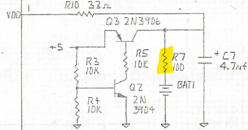 Early hardware versions of the board allow backdriving the lithium battery via R7 when the PEB was switched on - see the PCB and schematics excerpts left and middle.