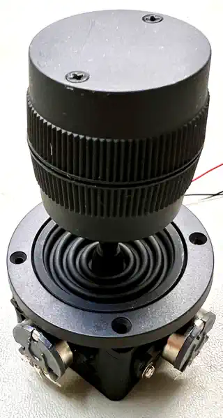 Die 4 Taster sollten kein Diskussionsthema sein, aber man muss sie alle haben. Man findet bei entsprechender Suche durchaus 'Joysticks' (gemeint sind meist Kreuzknüppel an Potentiometern) die sich '3 Axis' nennen, aber da findet in der z-Achse keine Rotation statt, sondern man kann einen Kontakt durch Drücken des Hebels betätigen... dann gibt es welche, die sich '4 Axis' nennen, und auf die Studiotechnik verweisen, die tatsächlich einen drehbaren Hebel haben - manche sogar noch mit einem Knopf zum drücken! Sind das jetzt pandimensionale '5 Achsen Spaßstäbe'...? Naja, ich habe mal verschiedene Modelle bei den 40 Räubern bestellt. Der erste sieht schon recht gut aus - alle 3 Achsen durchlaufen die vollen 5 kΩ von Anschlag zu Anschlag, auch die z-Rotation. Nur ist auch da ein Rücksteller drin (der MBX Joystick hat keinen), und der Drehwinkel der Knüppelachse beträgt keine 270° wie beim Original, sondern nur knapp 90°. Den Rücksteller kann man ausbauen, aber mit dem geringen Winkel und der daraus resultierenden höheren Empfindlichkeit muss man wohl leben. Der zweite hat zusätzlich den Knopf oben drauf, der Rest ist identisch, und der dritte ist, obwohl völlig anders abgebildet und spezifiziert, völlig identisch zum ersten, weswegen es auch kein extra Foto gibt. |