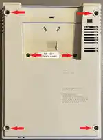 Zerlegen des MBXDas geht in mehreren Schritten: zuerst wird der Deckel entfernt, indem sechs Schrauben auf der Unterseite gelöst werden. Bei vieren davon muss der eingestöpselte Fuß erst entfernt werden, bevor man an die Schraube kann.Dann kann man den Deckel ohne weiteres abheben, muss aber auf 'halber Strecke' die Kontakte des Keypads links unten abziehen! Alle Komponenten (bis eben auf das Keypad) verbleiben in der unteren Gehäuseschale. Was mir aber etwas Sorge bereitet, ist das ganze Plastik-Gebrösel, das aus den Schraubenlöchern kam - auch beim Zerlegen des Joysticks! Da muss ich beim Zusammenbauen sicherstellen, daß mir später kein Gewinde flöten geht... Um die Platine auszubauen, muss u.a. der Spannungsregler gelöst werden - entweder an der Schraube des Kühlkörpers, dann hängt einem der schwere Kükörper dauernd im Weg, oder an der Schraube des Reglers, dann wird der Regler aber schneller warm, falls man Tests am laufenden System vornehmen will. Natürlich müssen der TI-Interfacestecker und der Lautsprecher abgezogen werden - der Lautsprecher verbleibt zunächst am Board und muss anschließend abgelötet werden (das empfiehlt sich sowieso, sofern man keine Funktionstests machen will - er ist einfach immer im Weg). Tja - und dann kommen diese Abschirmboxen (Tunerboxen) dran... denn es sind zwei, wobei die obere die untere überlappt, d.h. die obere muss zuerst raus, bevor man die Fixierung der unteren aufheben kann. Fixiert sind beide mit den berühmten Laschen, die je nach sadistischer Disposition des Montageleiters entweder nur verdreht, oder auch verlötet werden - das muss jeder selbst hinbekommen... |