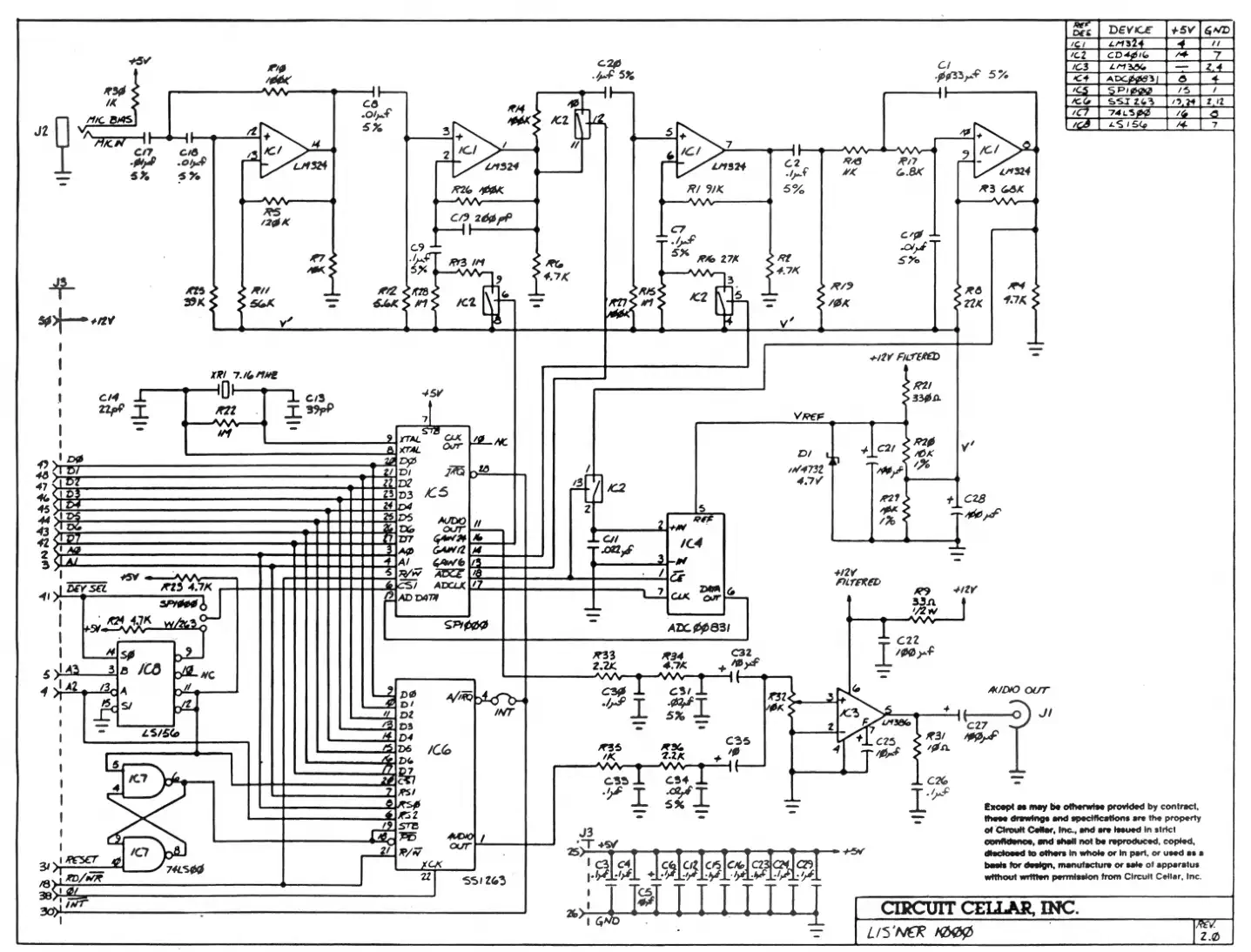 daß es beispielsweise auch - ja, wirklich - für den IBM-PC verfügbar war. Die Frage, ob und wer nun von wem abgekupfert hat, ist dabei nicht leicht zu beantworten, aber der Lis'ner scheint irgendwann um 1984 auf den Markt gekommen zu sein, das entnehme ich einem Artikel aus 'Ciarcias Circuit Cellar' aus dem Jahr 1984 sowie dem Lis'ner User-Manual, das für die Version 2.0 ein Copyright von 1984 angibt. Das MBX wurde auf der CES 1983 angekündigt (aber Gemini sowie der Expander waren ja schon da...), und - trotz dem zu diesem Zeitpunkt schon beschlossenen Ausstieg von TI aus dem Homecomputer-Segment - vermarktet. Es ist daher nicht eindeutig zu klären, wer zuerst da war und wer von wem abgekupfert hat, und ich investiere die Zeit, statt das endgütig zu klären, lieber in die Schaltungsanalyse (der Brotkastenadapter kam viel später und war ein - wie üblich und oben schon gesagt - schlechter Klon des Lis'ners). ... und am Ende basiert das alles wahrscheinlich sowieso auf ein und derselben App-Note von GI, und die ganze Aufregung war für die Katz... |