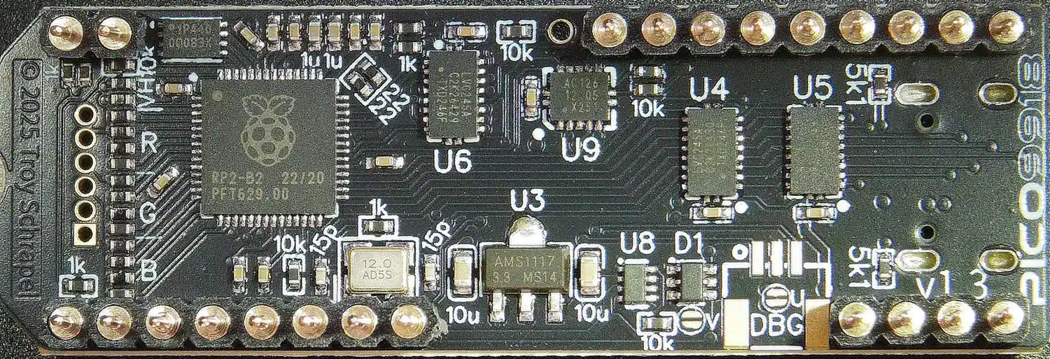 den Boot-Button und den USB-Port auch nach dem Einbau erreichbar halten muss (ab Version 1.3) und ihn eingebaut lässt. Ob es allerdings möglich ist, einen 9935 Chip auf dem 2040 zu emulieren, ober ob man dazu einen Pico 2 auf Basis des 2350 einsetzen muss, ist aktuell noch nicht geklärt - und aufgrund der F18 Emulation ab Firmware 1.0 sowieso irgendwie irrelevant. | |||