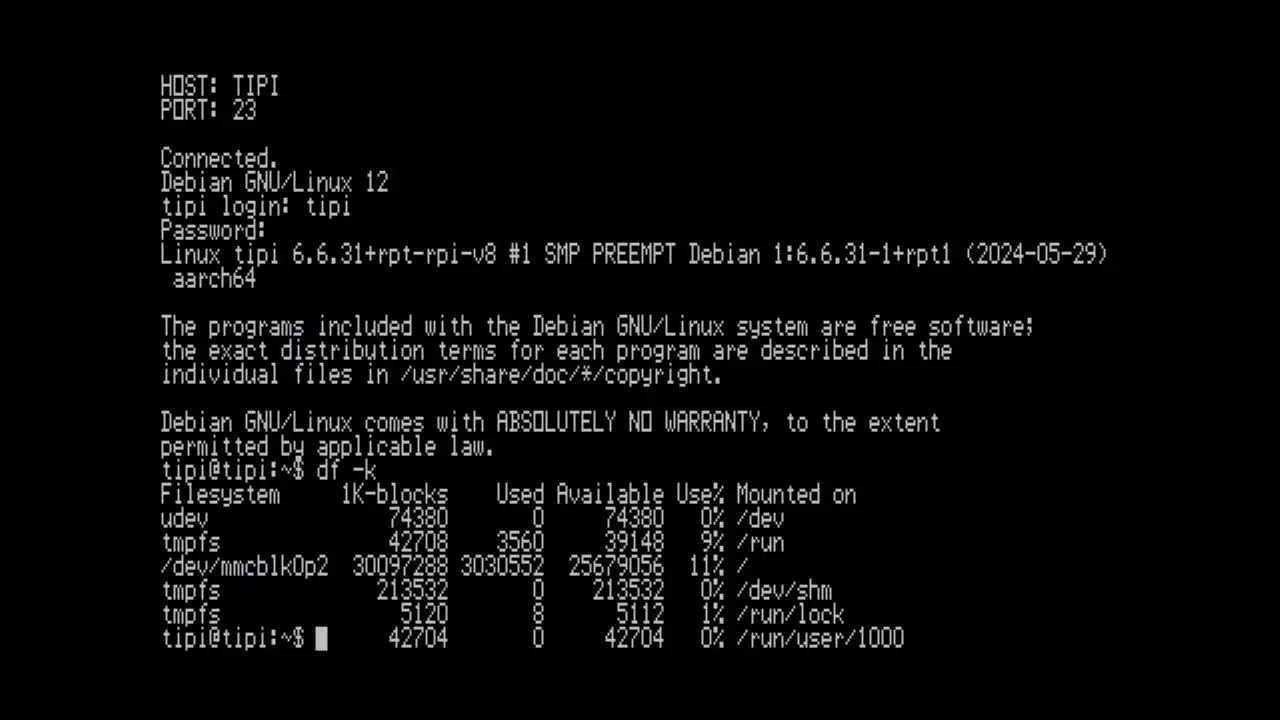 Klar - das geht auch, sofern man ein Programm benutzt, das das kann. Es geht auch der "klassische Forth-Screen" mit 64 Zeichen, aber dazu muss die TIPI Telnet-Implementierung einen besseren Font bereitstellen - das hier abzubilden verbot sich von selbst... Wer mehr Screenshots will, kann sich das beim TIPI Sidecar ansehen. | ![]() | ||