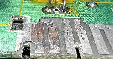 Diese Kontakte hatten eine heftige Oxidschicht angesetzt, was die seltsamen Messergebnisse erklärt.