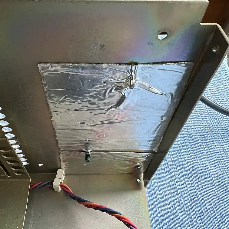 Der Platz für die Erweiterungskarten besteht den "Scheppertest" nicht - also muss da auch Alubutyl drauf.