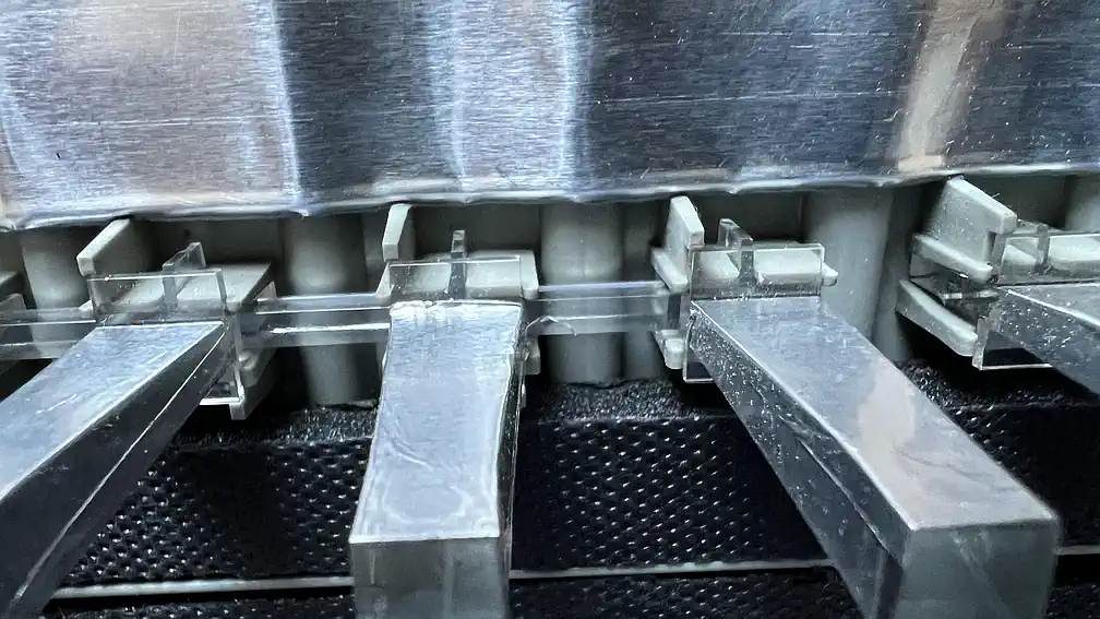Das Bild sollte hinreichende Anhaltspunkte geben. In meinem Fall war es noch wichtig, die später nach vorne zeigende Seite etwas in diese Richtung zu biegen, damit die unten sichtbaren Pufferscheibchen bei der Montage des Gehäuses etwas Druck auf die Frontblende ausüben, um ein Klappern zu verhindern - der durch die Erweiterungskarten erzeugte Druck reicht hier i.d.R. nicht aus. Die Extra-Lüfter wurden weiter oben ja schon besprochen. |