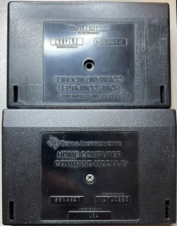 Bis etwa Ende 1983 (belegt ist die KW44 - Danke 'Schmitzi'), findet man die 'Non-QI', ab 1984 tauchen dann die QI-Konsolen auf. Irgendwie hatte TI damit ein Problem, daß auf einmal(?) Cartridges auf den Markt kamen, die auch ohne den 'Segen aus Lubbock' (= PHM-Nummer) genutzt wurden. Da man sowieso - warum auch immer 😉 - ein billigeres Redesign wollte, wurde das 'IC-Grab' in der Urversion beseitigt und mittels FPGA eine neue Konsole aufgelegt - mit durchaus sauberem PCB-Design und optimiertem Netzteil, diesmal aber mit einem ROM-Monitor, der das ROM ab >6000 im Modulport ignorierte! Der Adressbereich war noch verfügbar, wurde aber vom Monitorprogramm nicht mehr gescannt und zur Auswahl angeboten - Bingo! Das war der nächste Schuss ins Knie, den die Texaner abgegeben hatten - auf einmal liefen alle ROM-only Module nicht mehr... obwohl es schon damals Stimmen gab, die behaupteten daß die einzig guten Spiele, die als Modul vorlagen, nicht von TI stammten und somit ohne GROM-Lizenz hergestellt wurden - die rund 20 Titel von Atari nur beispielhaft genannt (obwohl man das auch als Revanche von TI an Atari wegen Activision ansehen könnte, aber das ist eine andere Geschichte). Soweit ich weiß hatte danach nur Tigervision eine Reihe an Modulen aufgelegt, die keine Module mehr waren, sondern Sidecars! Von diesen habe ich nur 'Miner 2049er', den ich aber erst untersuchen kann, wenn ich ihn in Händen habe. |