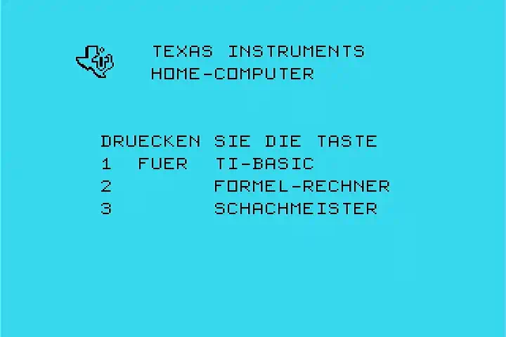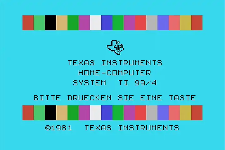 | Das ist eins von den 'very rare' Modulen, denn es ist NICHT Physical Fitness, auch wenn dies - oha - auf der Platine aufgedruckt ist! Es ist die deutsche Version, mit dem auch vom 'Schachmeister' bekannten TI-99/4 Titelbild (siehe unten), die auch inhaltlich etwas anders aufgebaut ist. Und - ebenfalls im Vorgriff auf den Absatz weiter unten - wir haben auch hier den -5V/Reset Kurzschluss - diesmal etwas 'leistungsfähiger' mit einem richtigen Draht. Den habe ich natürlich sofort gegen einen 150 Ohm Widerstand ausgetauscht - logo. Die GROMs sind tatsächlich Baujahr 1980, mithin also mein ältestes Modul derzeit. Mir ist bei diesem Modul übrigens das erste Mal aufgefallen, daß bei manchen die 'Prägung' auf der Bodenplatte um 180 Grad verdreht ist (oder doch 360? Mal ALB fragen...). Das ist kein Spezifikum der 'alten' Module, das scheint insofern Zufall zu sein, als es wohl von dem benutzten Werkzeug bzw. der jeweiligen Produktionslinie abzuhängen scheint. |