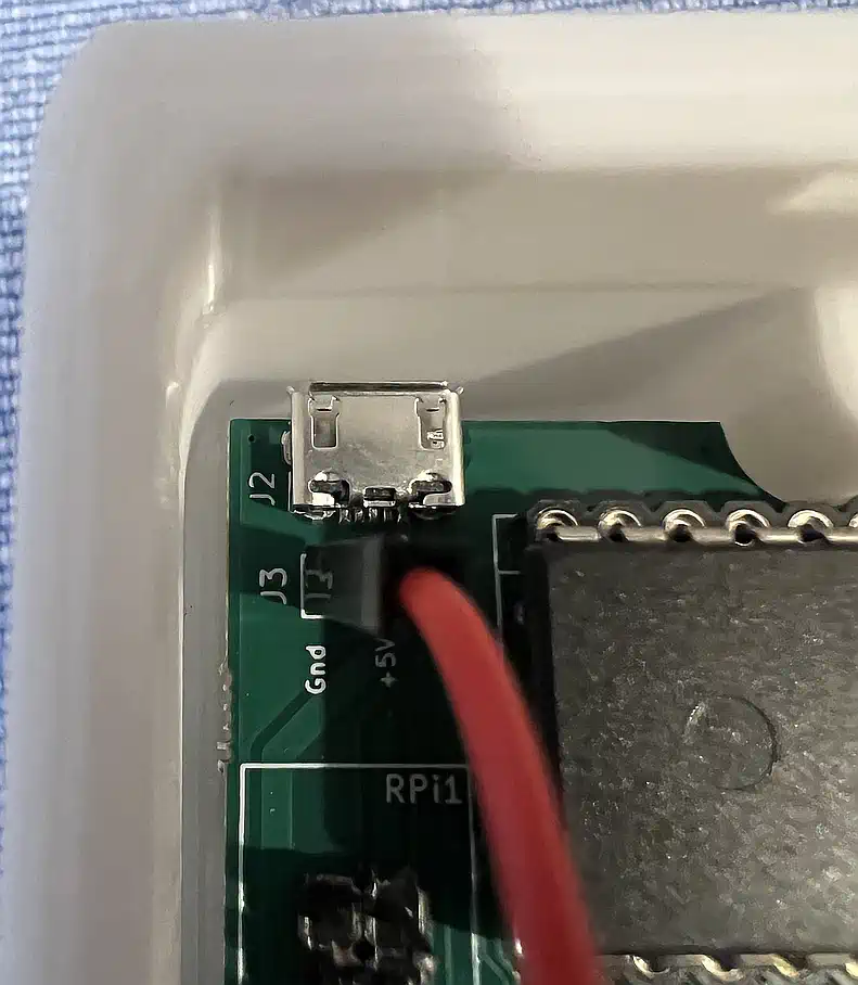 Es fällt auf, daß da, wo ein Mikro-USB Anschluss auf dem TIPI-Board ist, ein Loch im Gehäuse fehlt. Nun mag man sich fragen, was das soll... aber kurzes Nachdenken hilft auch hier. Dieser Anschluss ist - warum auch immer - wohl ein Rest aus früheren Zeiten, denn er versorgt die 32K UND das CPLD UND ggf. den PI! Das heißt aber, daß er die Konsole auch bestromt, wenn diese aus ist - keine gute Sache. Daher bringt der PI eine eigene Stromversorgung mit, denn es wird empfohlen, ihn immer an zu lassen bzw. man muss ihn, wenn das nicht gewünscht ist, vor dem Abschalten der Konsole herunterfahren, um die SD-Karte nicht zu ruinieren (Stichwort Auslagerungsdatei). Diese Versorgungsspannung muss aber über einen Winkelstecker an den hinteren USB-Port geführt werden, und das ist in der engen Kiste eine Herausforderung... |
