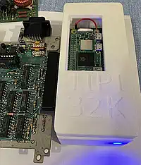 TIPI steht für "TI-Raspberry PI" und bezeichnet die Verbindung zwischen einem TI-99/4A und einem Raspberry-PI mittels einer TI-DSR und einer seriellen Verbindung zwischen beiden CPUs, in der Regel realisiert über bestimmte Speicherstellen im Adressraum der DSR. Im besten Fall taucht also ein neues Gerät im System auf, das meist eine bzw. mehrere Disketten emuliert und so den Dateitransfer mit der "Außenwelt" erlaubt. Wieso ich schreibe "im besten Fall" wird weiter unten erläutert... | |||