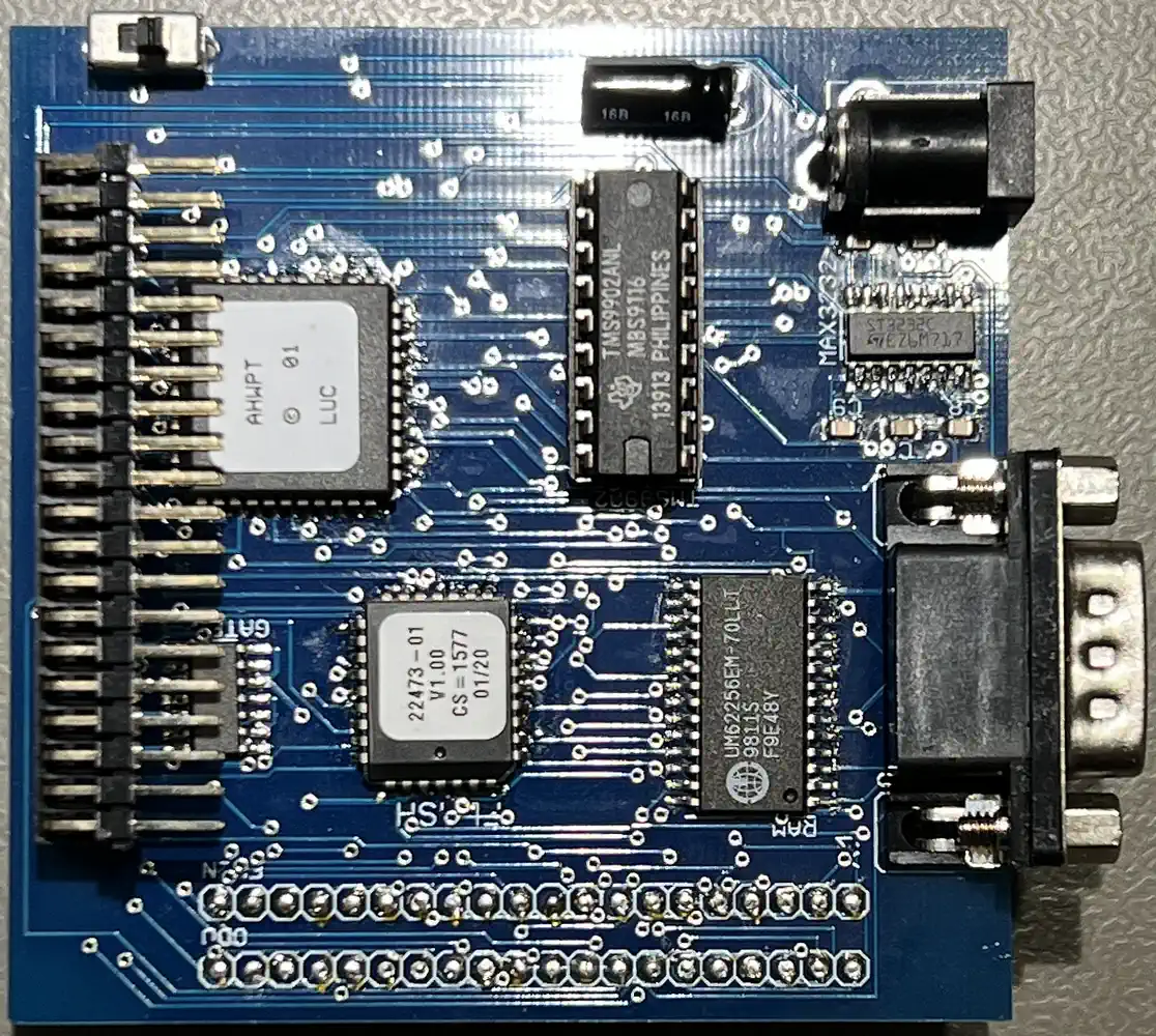 Die Hardware ist schnell erklärt: am Expansion-Port der Konsole hängen das DSR-ROM (als Flash), das Xilinx CPLD, die 32K RAM sowie der TMS9902 (mit dem unvermeidlichen MAX232) und etwas 'Glue' -