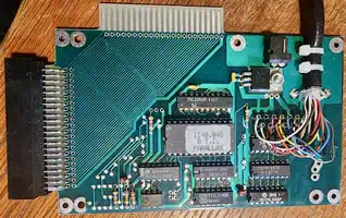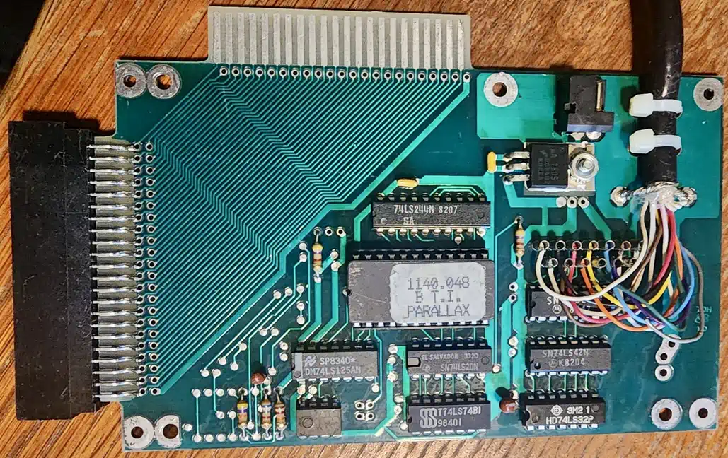 A quite rare expansion unit belonging to the "sidecar" class, where several interesting ideas have been realized. Unfortunately, I don't have this item on my workbench physically at the moment, but already a view on the PCB promises some nice surprises. For sure the DSR will be read from the EPROM and then be disassembled, but since chances are extremely low to get hold of my own unit, it will fly back to the states afterwards. The company Axiom produced several variants of this interface for different computers, all carrying the prefix "Parallax" - currently I only know about one for IBM-PC named "Parallax468". However, this is irrelevant for our analysis - so here you have the manual. | |||||||||||||||||||||